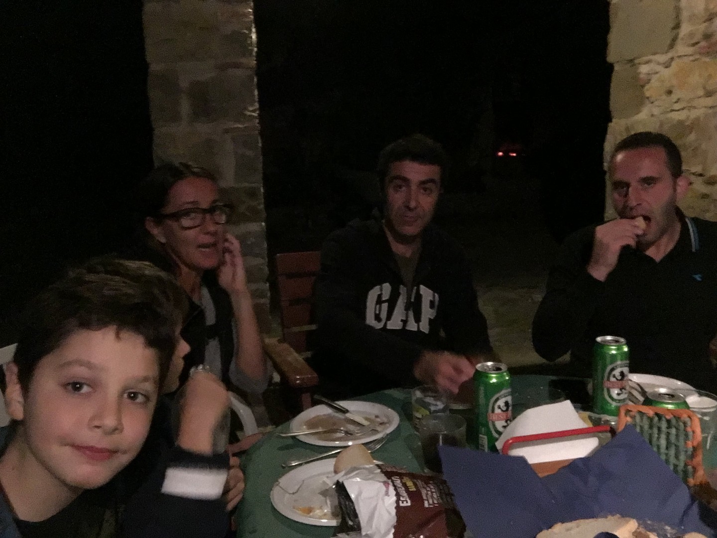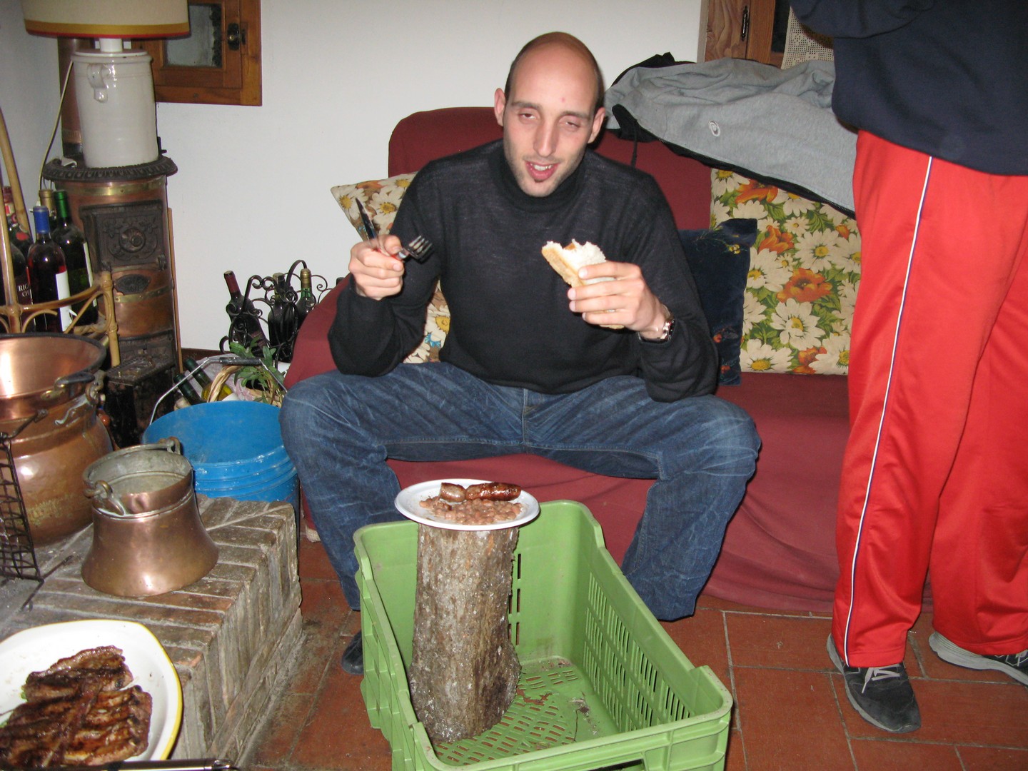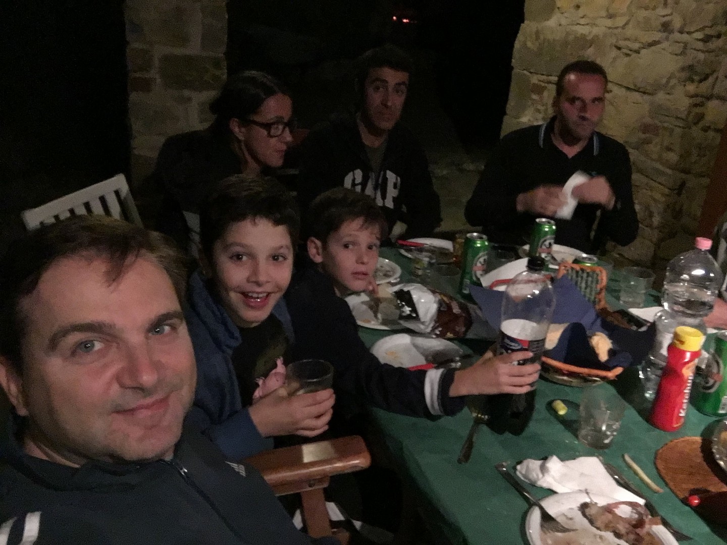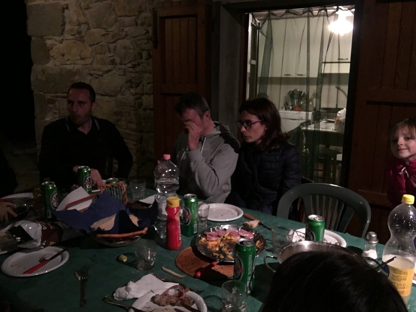 nel fattempo noi ci sfondiamo il fegato con ciucci frizzini, Coca Cola e contorno di salcicce con fagioli prima di un match serale riscaldato dal focolaio del Checco